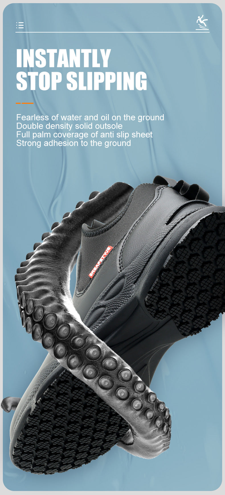 Non-Slip Sole – Provides reliable grip on wet and greasy kitchen floors